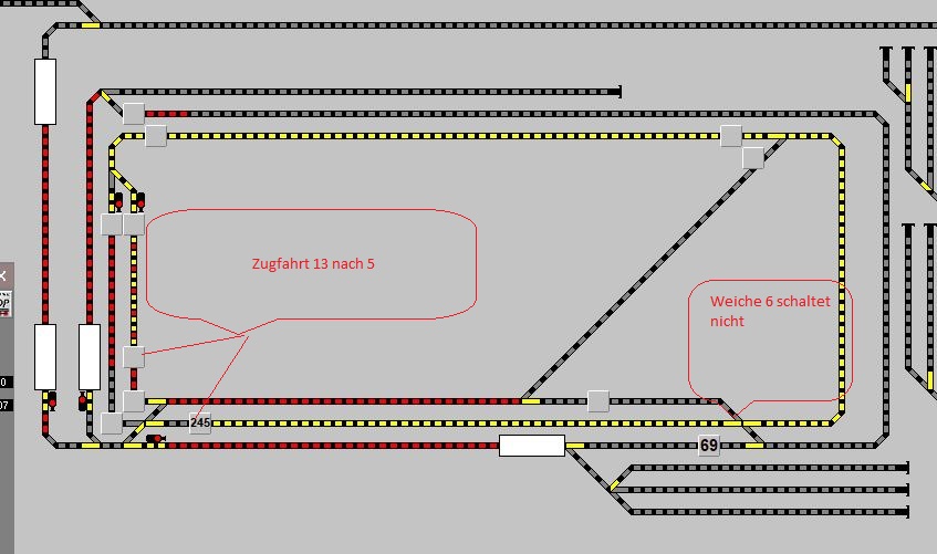 Gleisbild Änderung: Fahrstraße wird korrekt angezeigt eine Weiche schaltet nicht