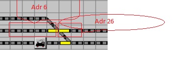 Die eine Weiche mit Adresse 26 als normale Weiche.